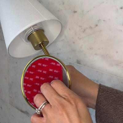 - Attach Lamp: Remove the backing from the 3M adhesive on the lamp and press firmly against the wall. Hold for 30 seconds to secure. For added stability, you can also use screws to mount the lamp.